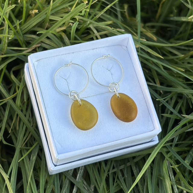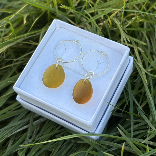 Amber Seaglass & Sterling Silver Hoops