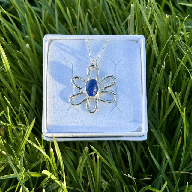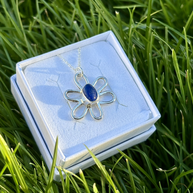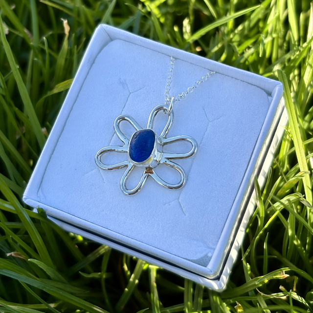 Please note this is a handmade item and may have imperfections and as this has a solid back over time the silver behind the seaglass can tarnish slightly giving a slight darker shade.